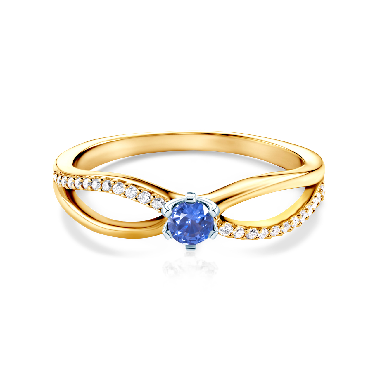 Pierścionek zaręczynowy SAVICKI: dwukolorowe złoto, niebieski szafir
