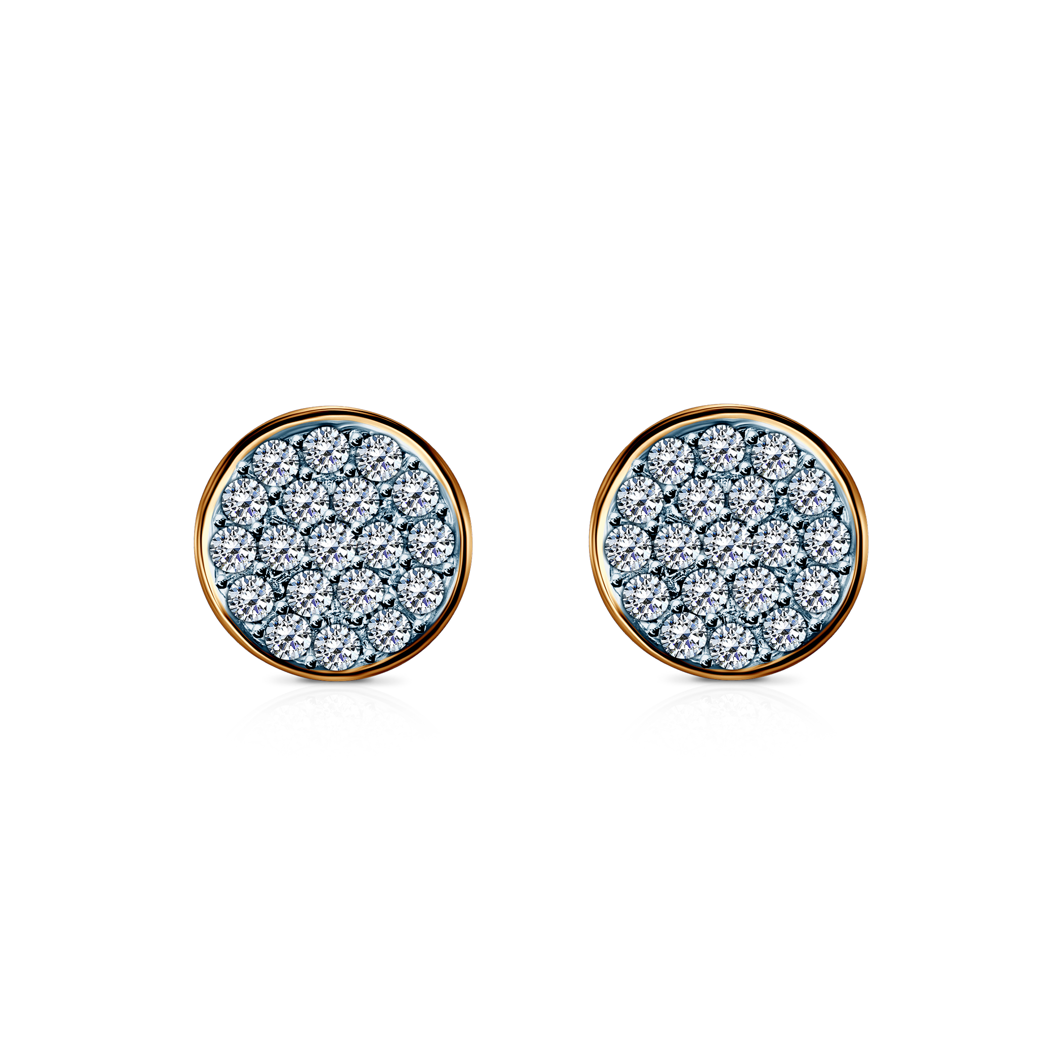 Kolczyki z 38 diamentami o łącznej masie 0,08 ct i szlifie brylantowym, wykonane z połączenia białego i żółtego złota (próba 585).